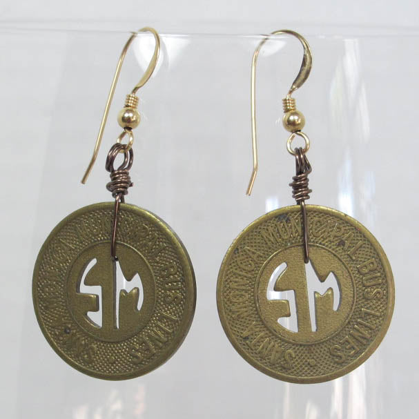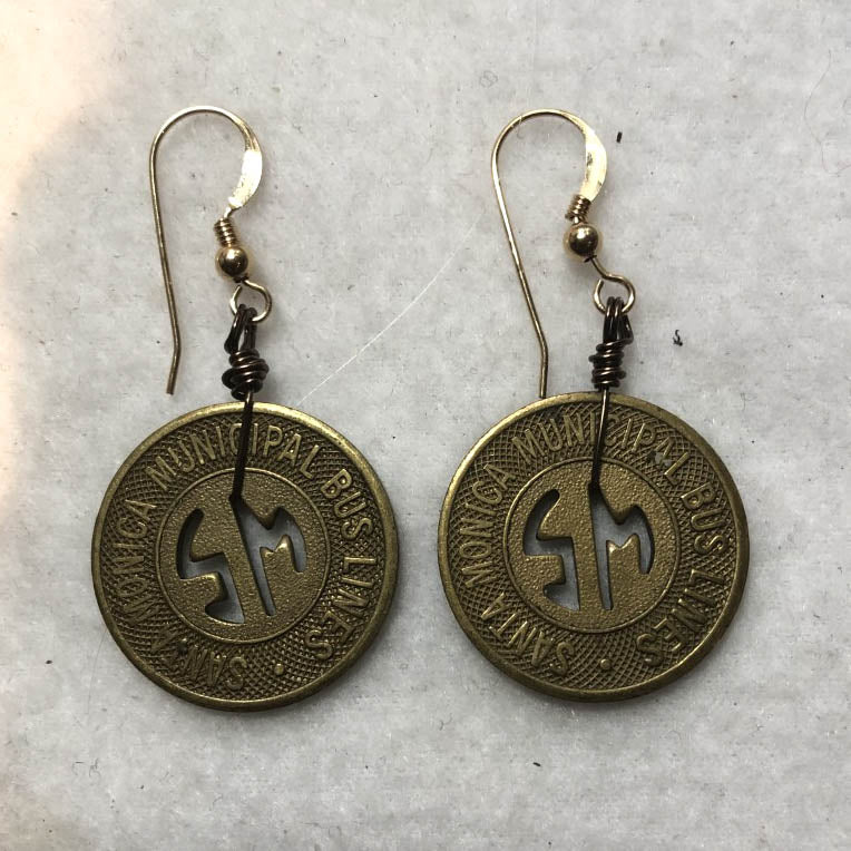 Original Santa Monica bus tokens. Color of metal varies since age of tokens varies. Each pair is unique.